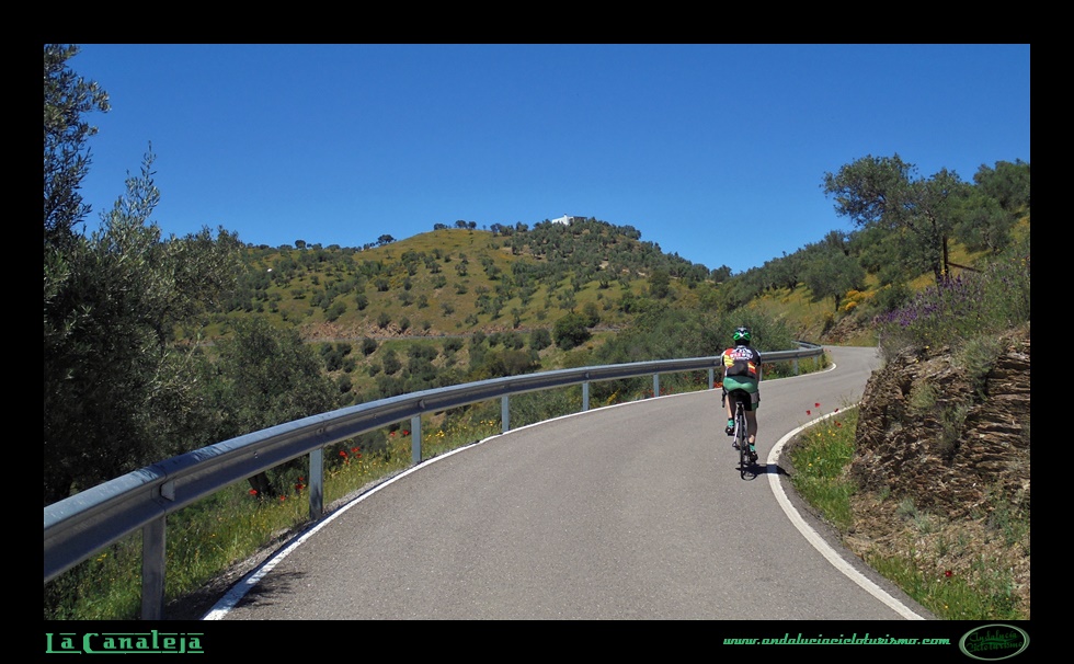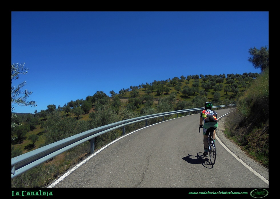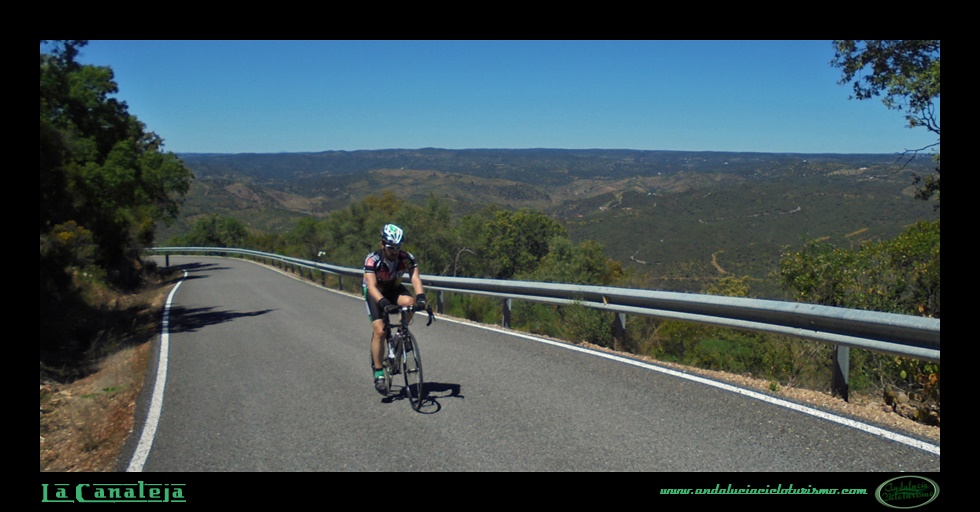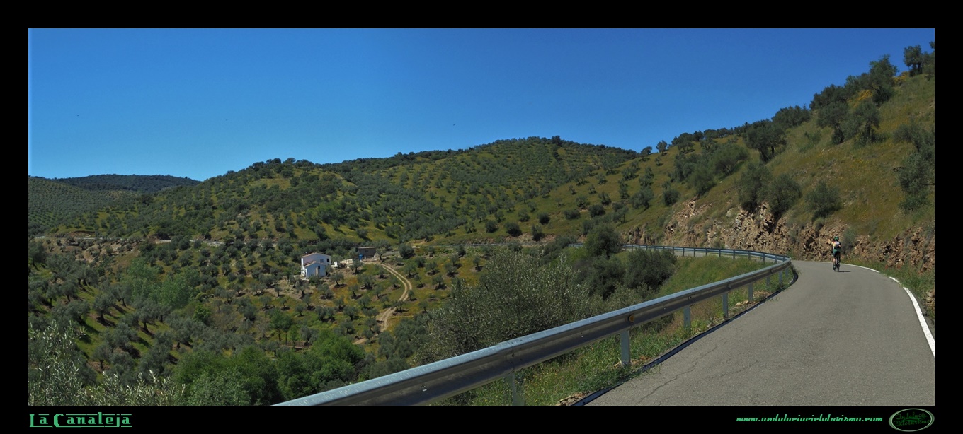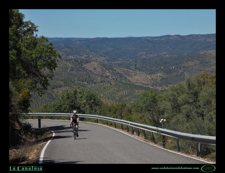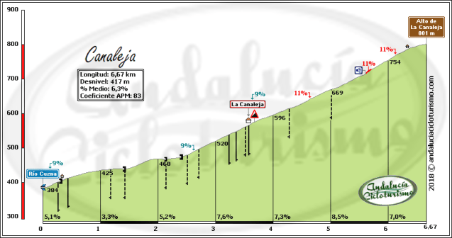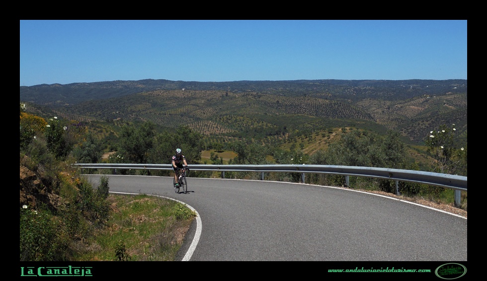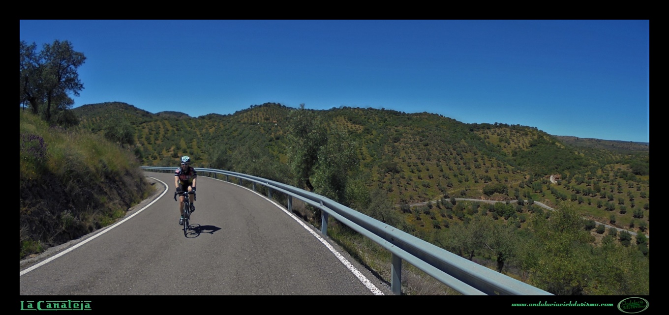 El inicio del ascenso consiste en un constante culebreo de la carretera hasta que, por fin, llegados a la entrada del Cortijo de La Canaleja, tras una cerrada curva a derechas, el trazado torna ligeramente rectilíneo, dentro de lo que cabe en una carretera de montaña, claro está.