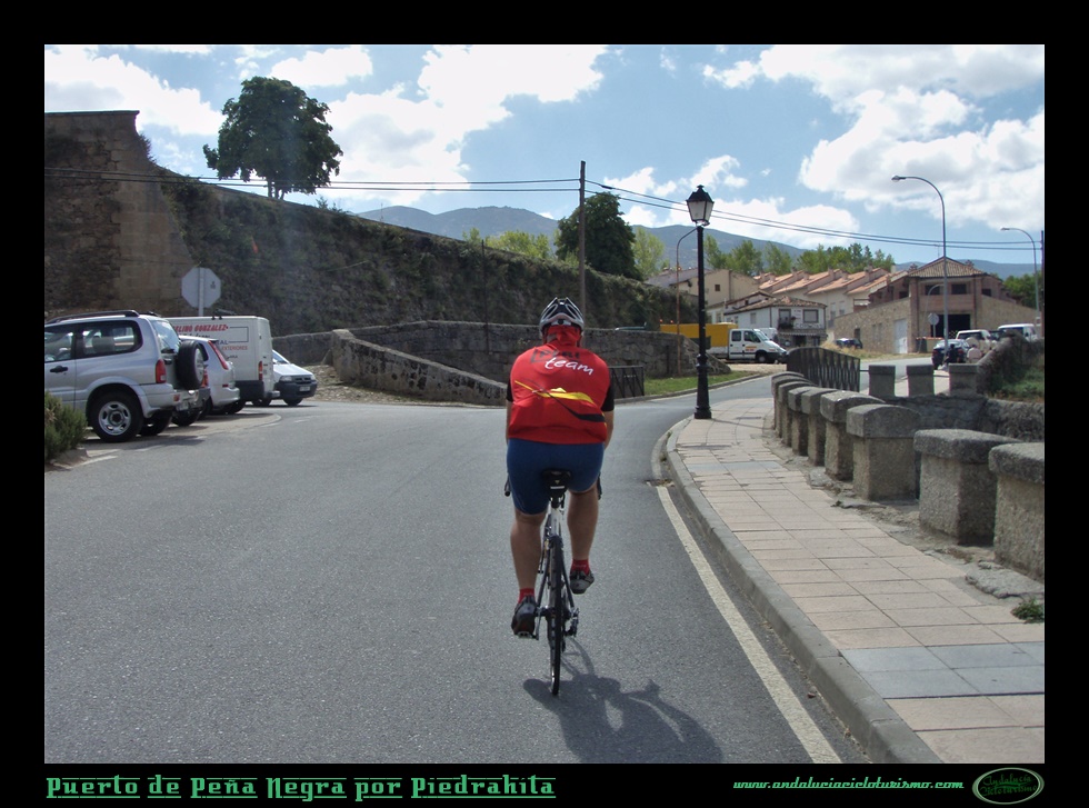 Piedrahíta es una de esas poblaciones abulenses ligada a los nombres de algunas de las más nobles familias de España, como, por ejemplo, la casa de Alba. La monumental villa, situada al pie de la Sierra de Villafranca -hasta donde vamos a ascender por el puerto de Peña Negra- es vestigio vivo por los muros de sus caserones, palacios, iglesias y conventos, de una buena parte de la historia del reino desde la Edad Media en adelante. Destacan en su soberbia arquitectura las murallas; la plaza de España, de factura poligonal y porticada; el imponente palacio de los Duques de Alba -residencia que fue de verano para sus dueños- de un exquisito estilo neoclásico francés; la iglesia de Nuestra Señora de la Asunción, edificada según es tradición, por Doña Berenguela sobre las ruinas de un antiguo castillo allá por el s. XIII y que, actualmente, alberga un museo de arte sacro; el convento de las Carmelitas y el de Santo Domingo, aunque este último se encuentra en un estado ruinoso.