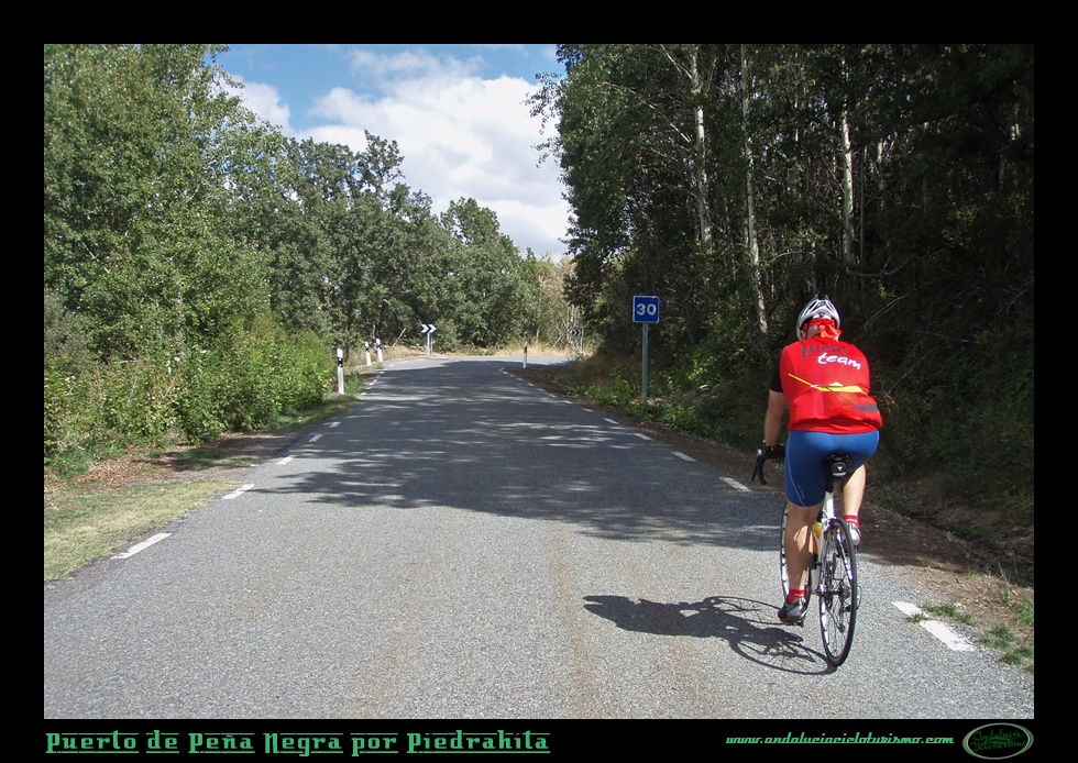 El de Peña Negra es uno de esos puertos que aún hoy son capaces de transmitir sensación de soledad y aislamiento, paz y tranquilidad absoluta, sobre todo en sus seis kilómetros finales en que la vegetación arbórea (principalmente rebollos) desaparece dando lugar a los cervunales (vegetación propia de las praderas más elevadas) y la altitud -estamos ante el puerto natural asfaltado más alto del sistema central- permite que nuestra vista se pierda en el llano horizonte mesetario.