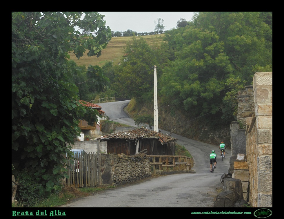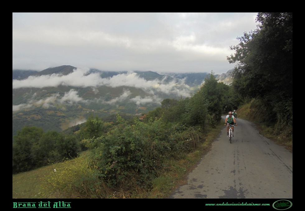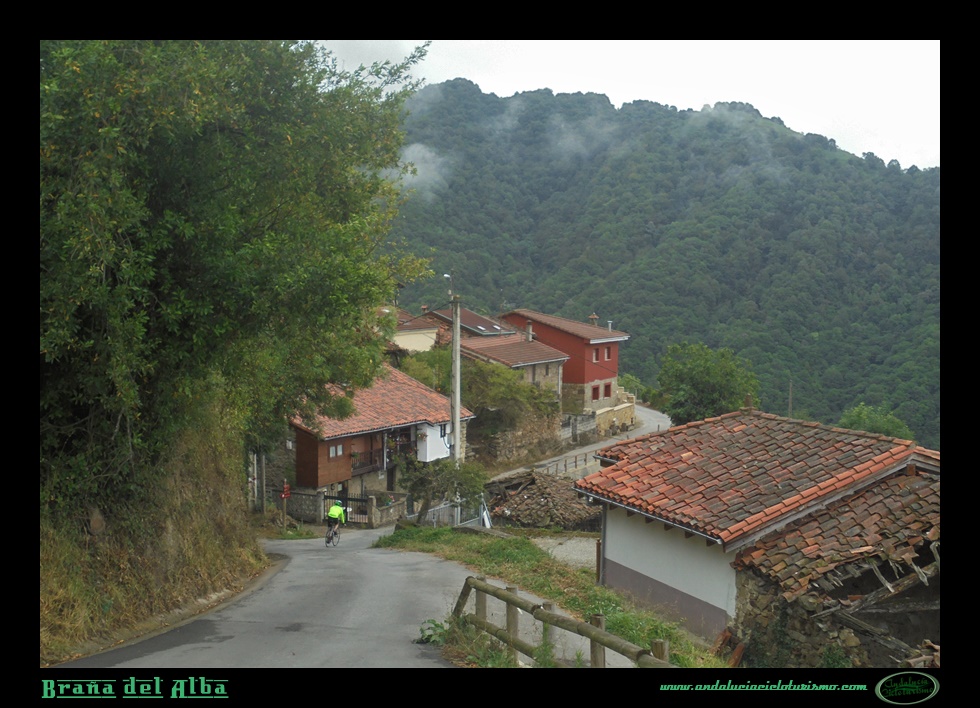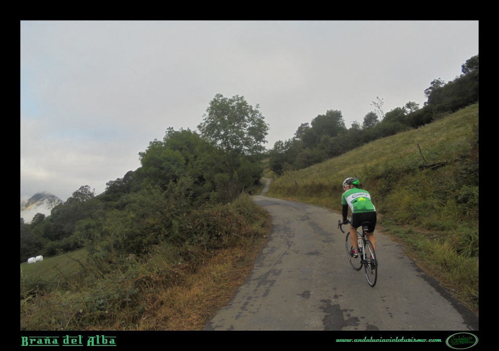 A su vez, la subida, más y más escénica, gana también en trazado, con la sucesión de varias curvas de herradura zigzagueando por la ladera, alguna ya por encima del 20%. Por momentos también la vegetación nos abraza, como si la naturaleza astur no quisiera faltar a nuestra cita.
