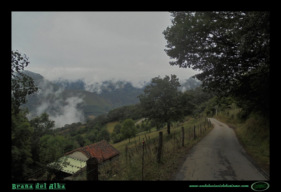 La niebla no quería perderse la ocasión -al fin y al cabo estamos en Asturias- y se va cerniendo sobre la montaña para impedirnos gozar por completo de un entorno que se nos antoja de una gran belleza. Junto con la niebla también la vegetación se cierra y nos cubre.