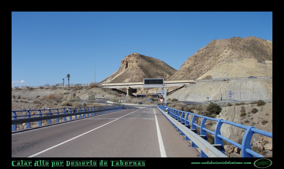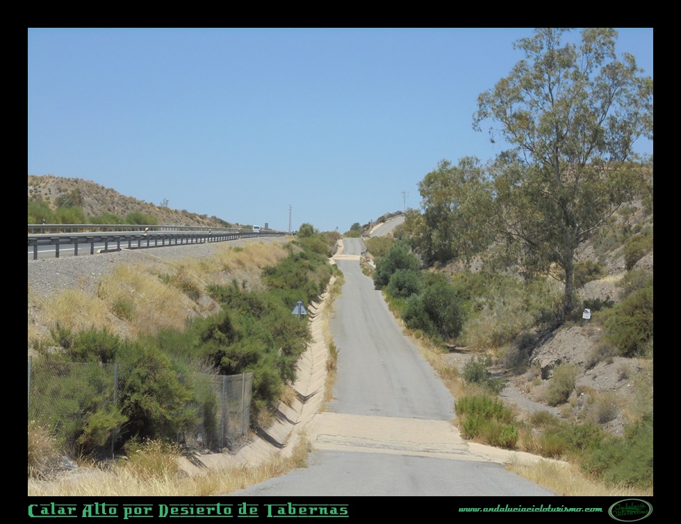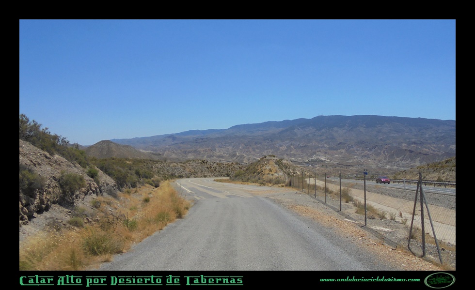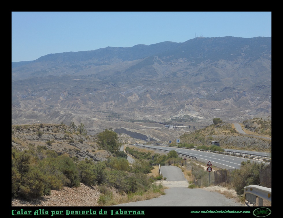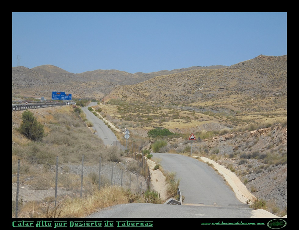 El sitio en que comenzamos la subida será el puente de Los Callejones, justo donde la N-340a se dispone a enlazar con la A-92 en una rotonda. Pero nosotros tomaremos una primera salida en dirección al “Western Leone”, decorado cinematográfico que ha servido para filmar renombradas piezas maestras del “Spaghetti Western” como Hasta que llegó su hora o Por un puñado de dólares, entre otras joyas del género. Aquí comenzamos nuestra travesía en paralelo a la autovía, con la sintonía de algunos de esos épicos western de Leone repitiéndose en nuestra cabeza. Seguro que saben de que les hablo: prepárense para la tortura de ascender todo el puerto -que no es precisamente corto- tarareando la misma estrofa de una canción.