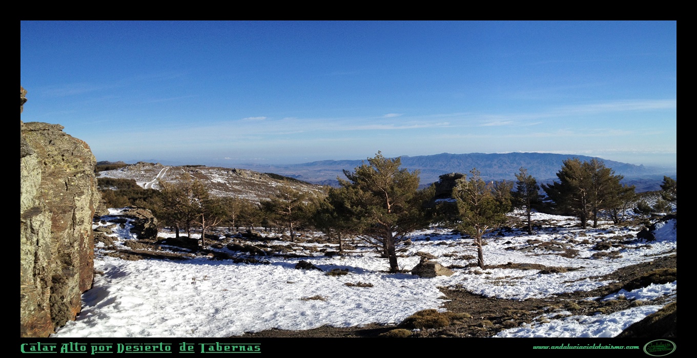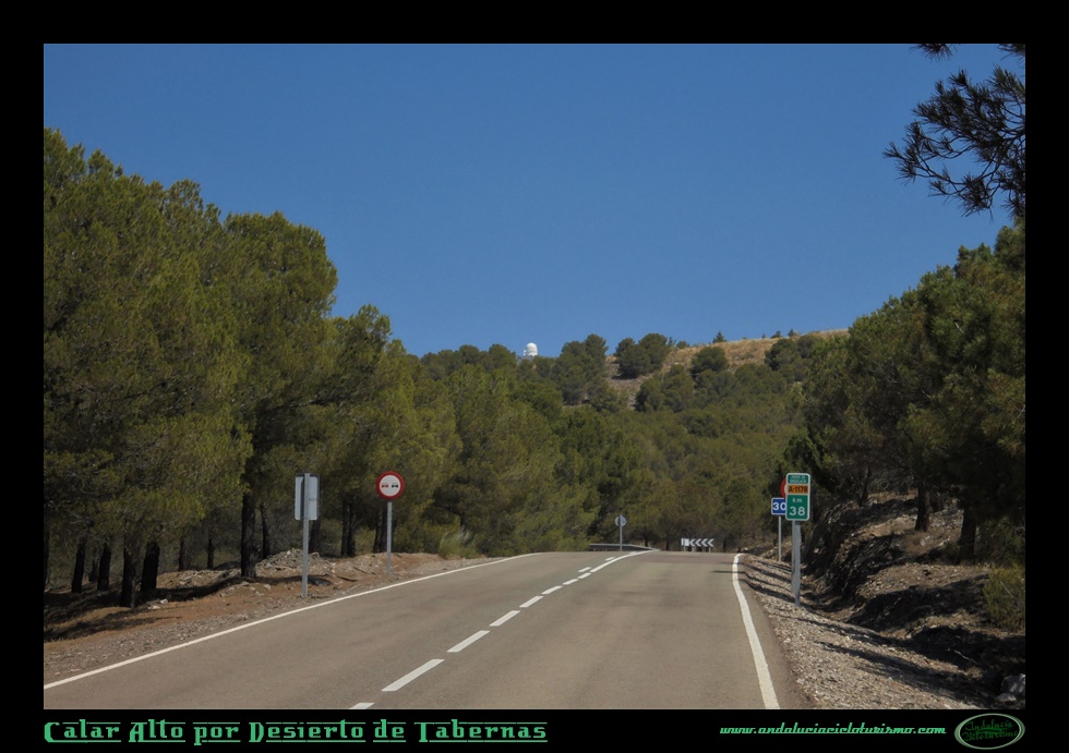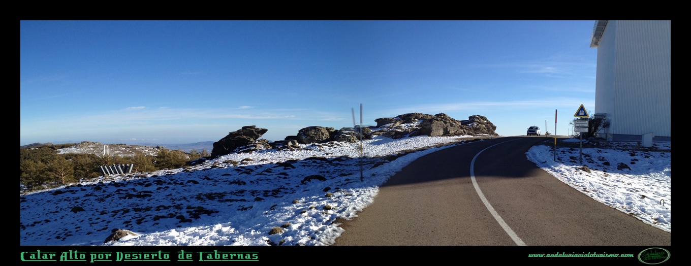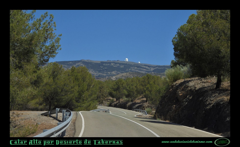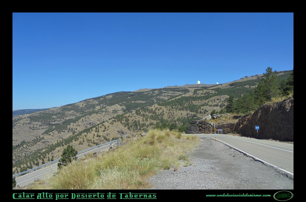 Al alcanzar los primeros observatorios, giraremos a la derecha buscando la cumbre mas alta a 2.163 m. s. n. m. Será junto a la cúpula norte, en progresivo giro a izquierdas, donde coronemos Calar Alto con unas imponentes vistas hacia el norte. Nos deleitamos en su contemplación: Pico Jabalcón, Sierra de las Estancias y Sierra de María y, por supuesto, Tetica de Bacares, en un primer término; Sierra de Cazorla y Segura, Sierra de Castril y la imponente mole del Pico de la Sagra en segundo término, además de algunas de las cumbres de la vecina Región de Murcia, según intuimos.