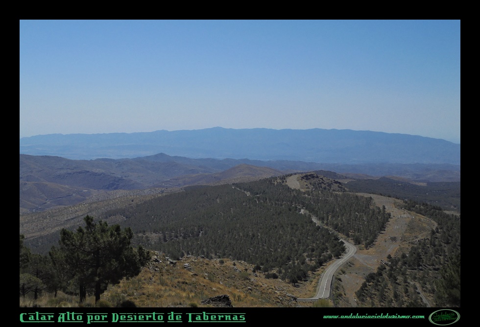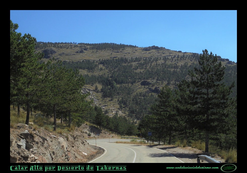 Estos kilómetros recorridos hasta aquí han servido de transición entre el Desierto de Tabernas y la Sierra de los Filabres. Aunque geológicamente la formación de esta sierra -englobada en el Sistema Penibético- es de origen alpino, el paisaje de este puerto, en cambio, dista un un mundo de parecerse al de sus primos franceses, italianos o suizos, ya que, como una buena parte de la provincia, ha quedado estigmatizada por una desertización que los planes de reforestación -del que un pinar que transitaremos es buen representante- aún quedan lejos de alcanzar a reparar mínimamente.