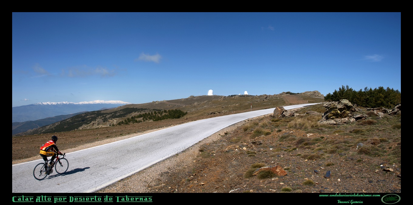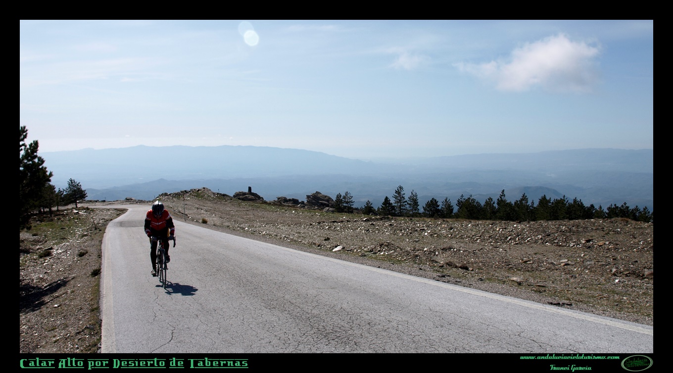 Sin embargo, la austera belleza de sus parajes no dejará indiferente al cicloturista que se aventure por sus excelentes carreteras. Su singularidad es tal que podremos disfrutar en un sólo vistazo de la presencia de la nieve en sus cumbres, del desierto abajo en el valle y del azul del Mediterráneo allá en lontananza. El verde de los altos prados alpinos lo cambiaremos por el pálido esparto que resiste valiente en las pardas laderas pizarrosas de Los Filabres, donde sólo tras las nevadas y las lluvias aparece un fresco bozo de verde vegetación, amable nuncio de una primavera efímera. Tiernos pinares enraízan, a su vez, en las alturas, mientras que en la vecindad de los pueblos, como hemos podido comprobar al inicio, florecen frutales como el almendro (incluso en las proximidades de Tabernas se da el cultivo del olivar, origen del afamado “oro del desierto”, aceite de altísima calidad, producto que no falta tampoco en la provincia almeriense).
