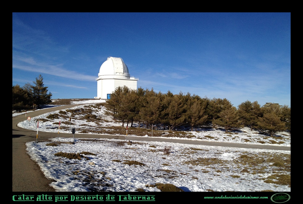 Pero la variopinta paleta de colores de los Filabres no alcanza su plenitud sin el azul de su cielo. La limpieza de sus celestes durante el día y la claridad de sus noches estrelladas lo convirtieron allá por 1973 en sede del CAHA (Centro Astronómico Hispano-Alemán), que ubicó varios telescopios en la cima de Calar Alto, a más de 2.100 m. de altitud: nuestro lugar de destino, al que se puede llegar en carretera por dos accesos: por el pueblo de Aulago y por el Collado de Venta Luisa, siendo también que a este último se puede acceder por el sur y por el norte con distintas variantes.