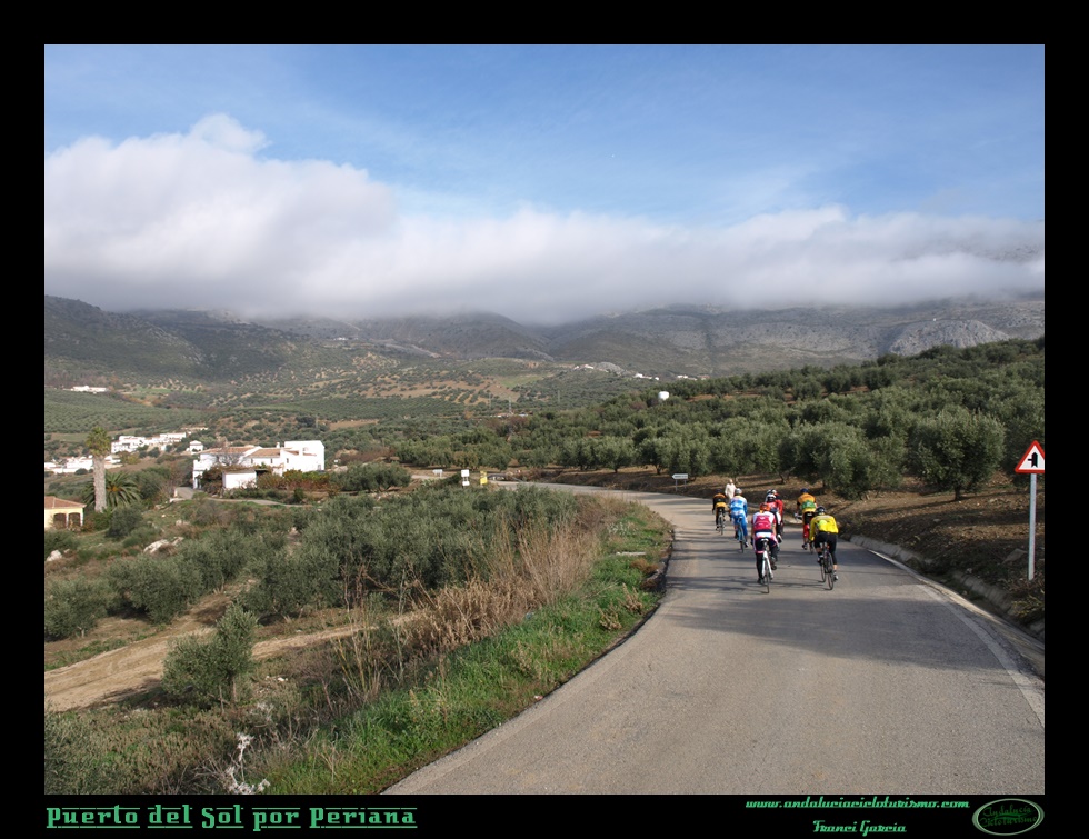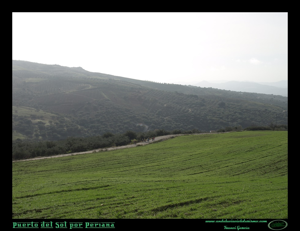 Retomamos el ligero ascenso escoltados por la enorme mole de la Sierra de Tejeda a nuestra espalda, con la cresta canosa que las nieves invernales le propician. Las lomas bajas, próximas a nuestro paso, se muestran cubiertas de un vasto olivar cuyo fruto da origen al famoso aceite verdial de la comarca, abandonado el cultivo de la vid, toda vez que se vio mermado tiempo ha por la perniciosa filoxera.